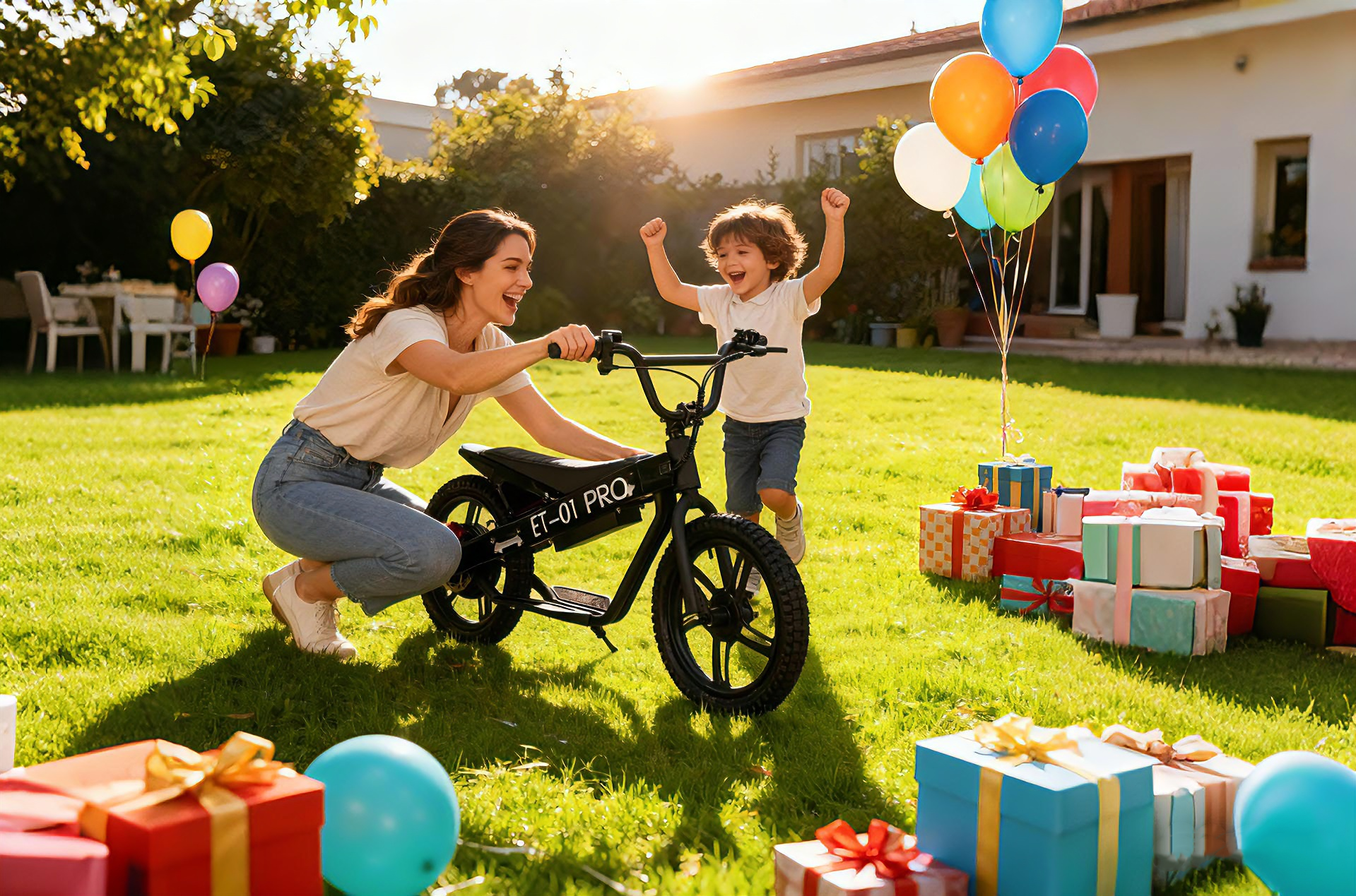 The DUODIAN 12TW/12TG is a 12" electric balance bike designed to help kids learn balance and throttle control before they move to a pedal bike or dirt bike. A low step frame, 120W motor and safe 9.3 mph top speed let young riders build confidence while staying in control.