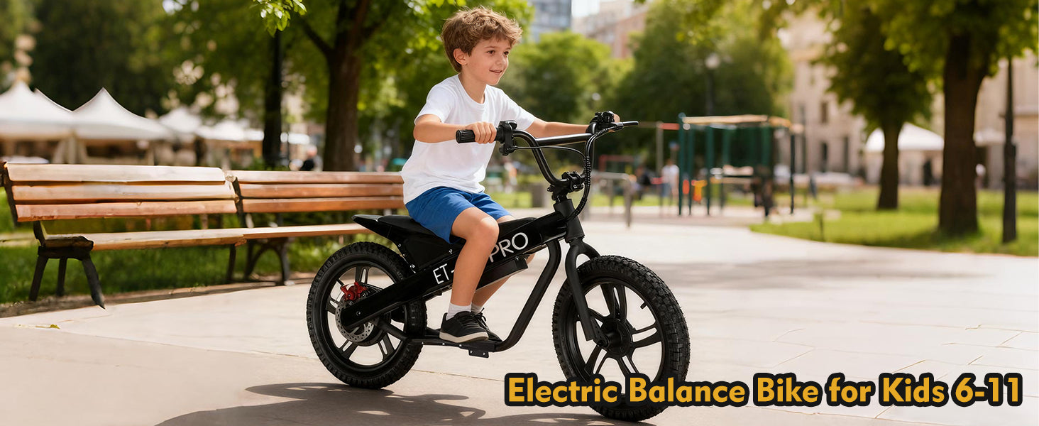 The ET-01 PRO is specifically designed for children aged 6 and above. It is the ideal next step for kids who have outgrown balance bikes and are ready for a real motorized off-road experience.