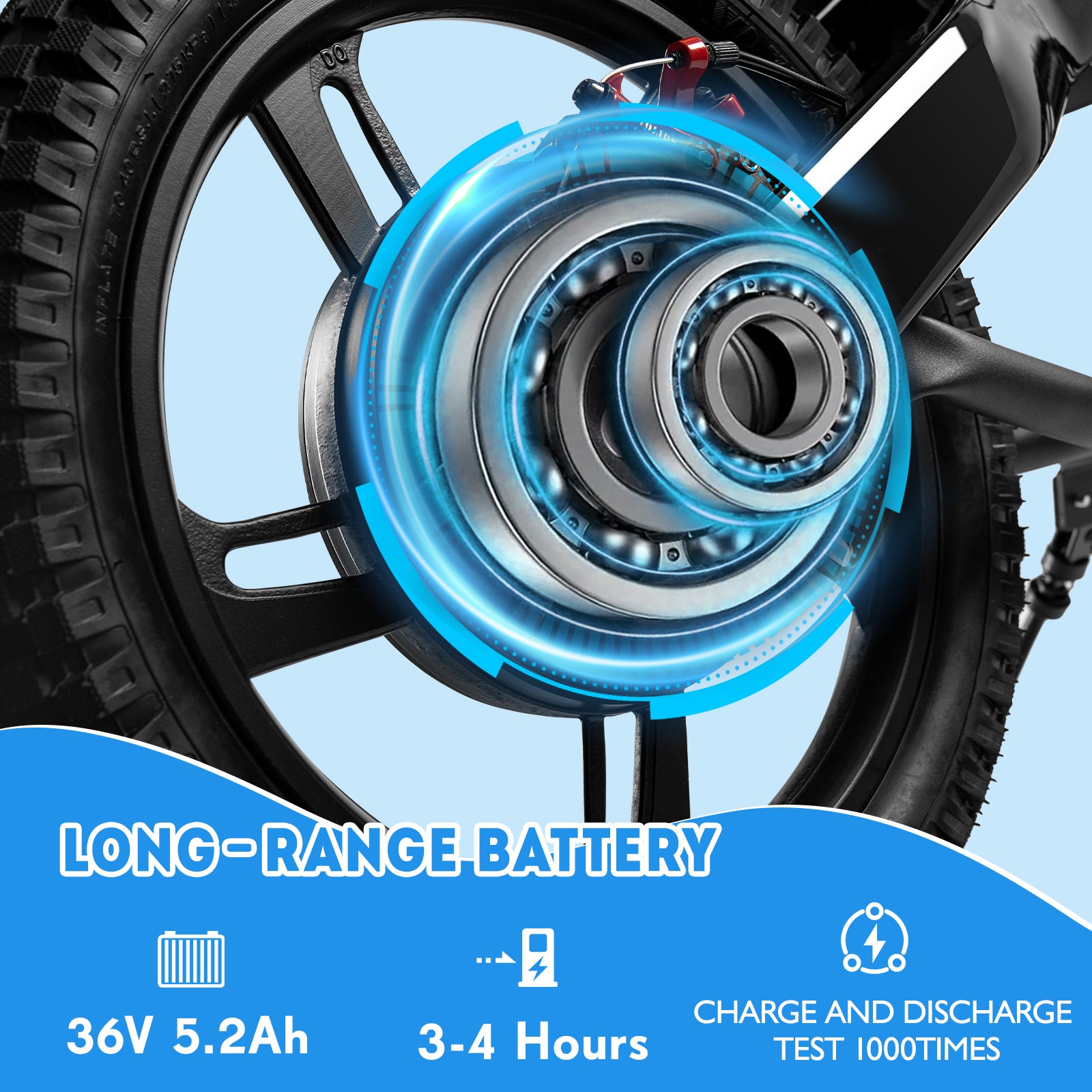 - Battery: 36V 5.2Ah High-Performance Lithium-ion