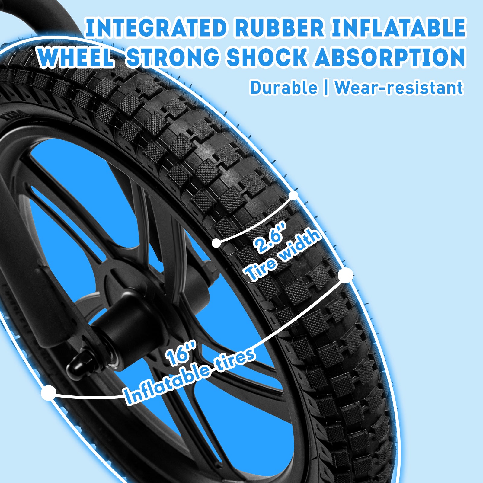 - Tires: 16" All-terrain Pneumatic Rubber Tires